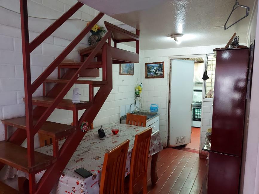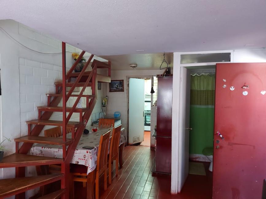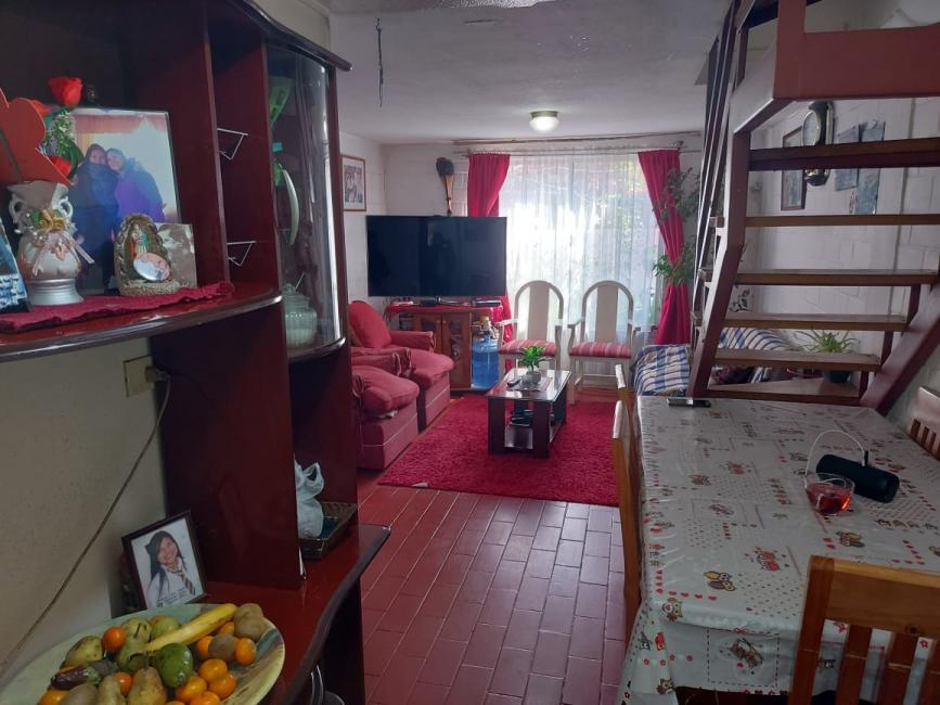 Casa dos pisos 2 Hab. 1 Baños, pareada, con pisos cerámico y flotante, de 2 dormitorios, living comedor, cocina, baño con cerámicas en pisos y muros, patio trasero con cobertizo, estacionamiento, entre otras cualidades.