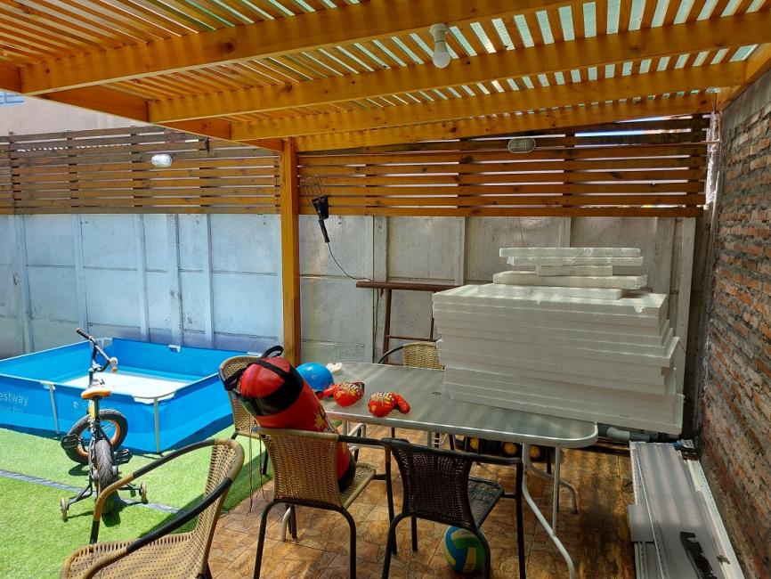 Casa dos pisos, pareo simple, cuenta con 4 dormitorios, 2 baños, Casa de 92 metros cuadrados construidos y de 129 metros cuadrados de terreno, ampliada en proceso de regularización, patio trasero y antejardín, Acceso principal y living comedor con piso de cerámicos, Dormitorios con pisos flotante, Cocina amplia y comedor de diario, pisos cerámicos, salida a patio trasero con pisos cerámicos terraza, Estacionamiento techado 1 vehículos.