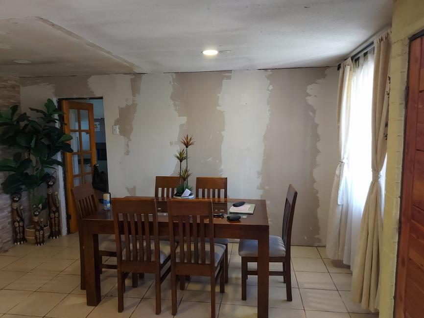 Casa dos pisos, pareo simple, cuenta con 4 dormitorios, 2 baños, Casa de 92 metros cuadrados construidos y de 129 metros cuadrados de terreno, ampliada en proceso de regularización, patio trasero y antejardín, Acceso principal y living comedor con piso de cerámicos, Dormitorios con pisos flotantes, Cocina amplia y comedor de diario, pisos cerámicos, salida a patio trasero con pisos cerámicos terraza, Estacionamiento techado 1 vehículos.
